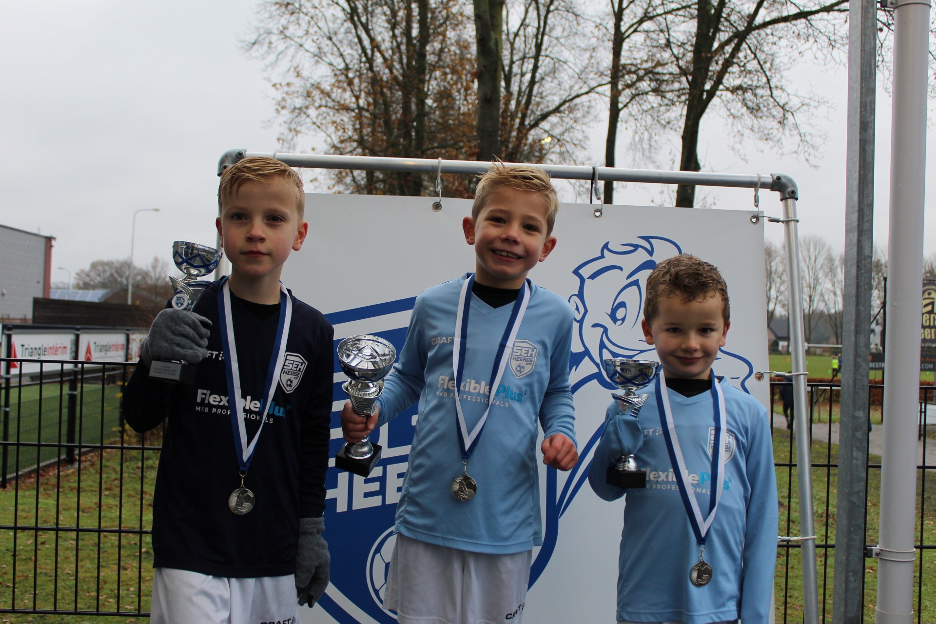 Onder natte, frisse en grijze omstandigheden en onder toeziend oog van veel ouders, grootouders én andere bekenden en kennissen hebben de jongste talenten van SEH, de voetballertjes van de FlexiblePlus League, afgelopen zaterdag hun laatste officiële wedstrijden van het jaar 2025 afgewerkt. Daarbij zijn ook de prijzen uitgereikt. Hiervan zijn foto's gemaakt.