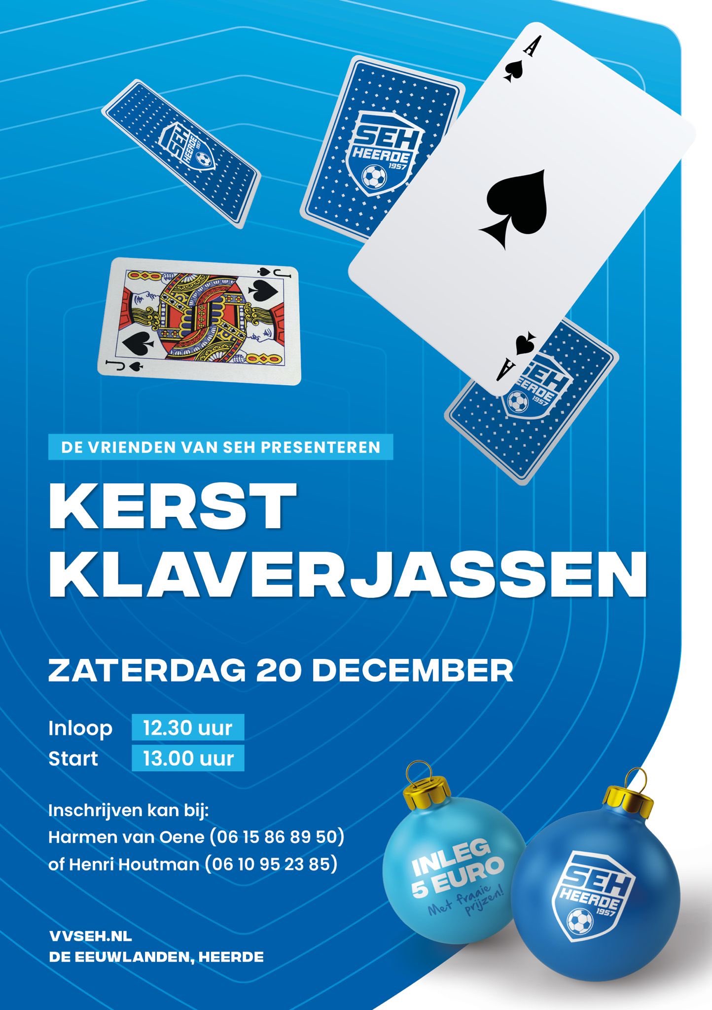 Op zaterdag 20 december zal er bij SEH weer het traditionele kerst-klaverjastoernooi georganiseerd worden. Gezelligheid troef bij dit jaarlijks zeer geslaagde evenement, mede mogelijk gemaakt door de Vrienden van SEH!