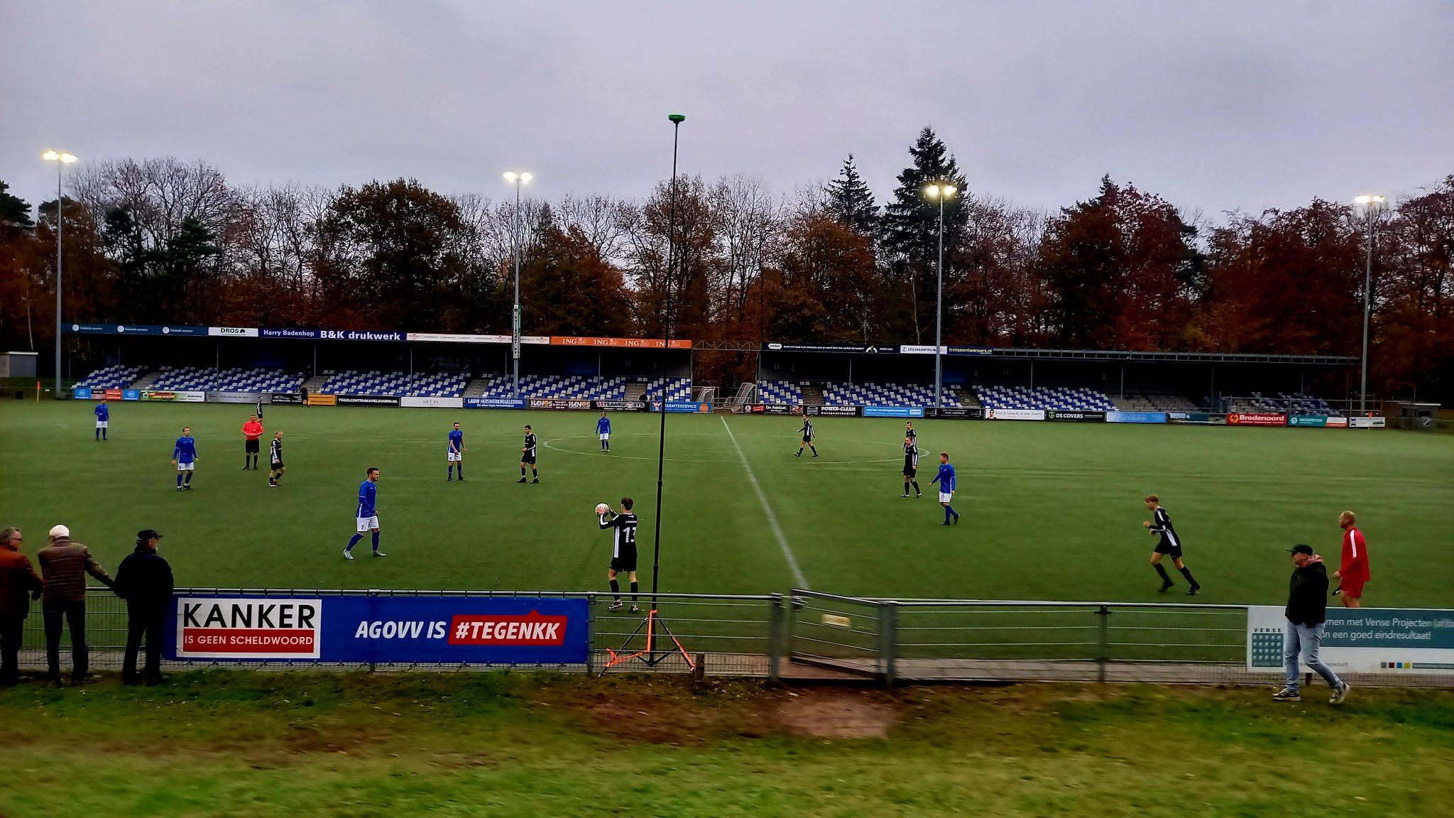 Het kunstgrasveld in het stadion lag er op deze grijze en vooral gure novembermiddag prima bij en even na half drie kon er worden afgetrapt onder een redelijke publieke belangstelling. Er werd evenwel begonnen met een minuut stilte ter nagedachtenis aan het overlijden van ons Lid van Verdienste, Fred Visser. Een in memoriam over hem zal na dit weekend nog volgen op onze website.